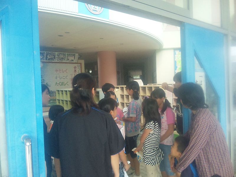 こどもたちもいっぱい集まってくれました こどもたちは窓ふきをがんばります