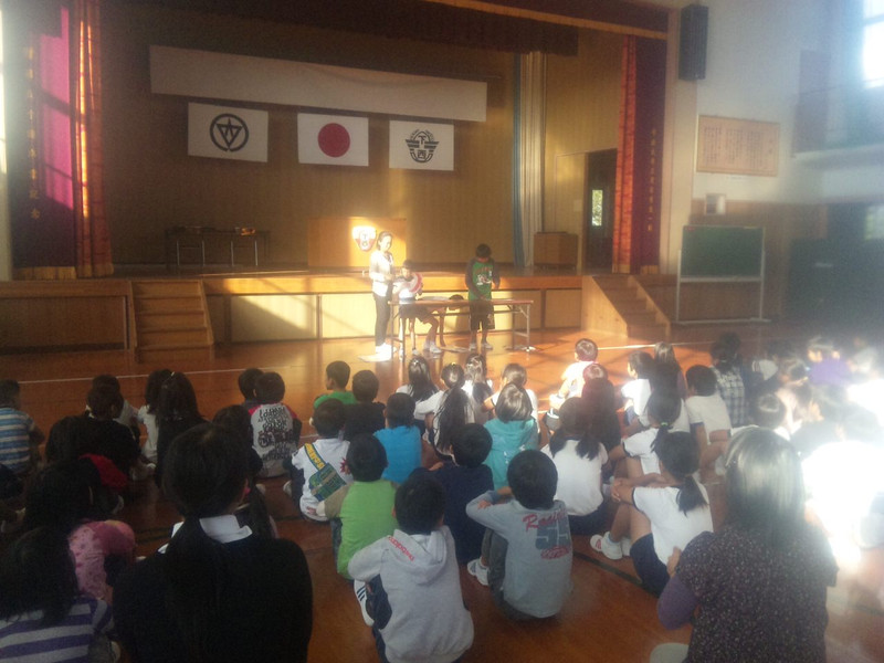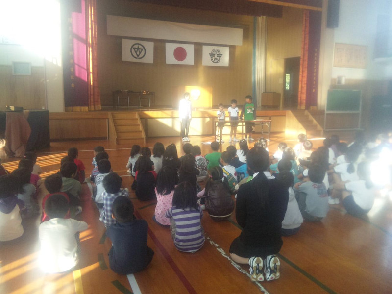 今朝はあおぞら学級の3人が 手作りの『はらぺこあおむし』の紙芝居をしてくれました。 かわいい絵のあおむしと上手な発表に大きな拍手がでした。