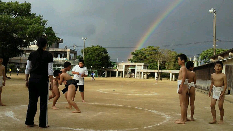 途中でダブルの虹も出て…今日は素敵な相撲練習でした