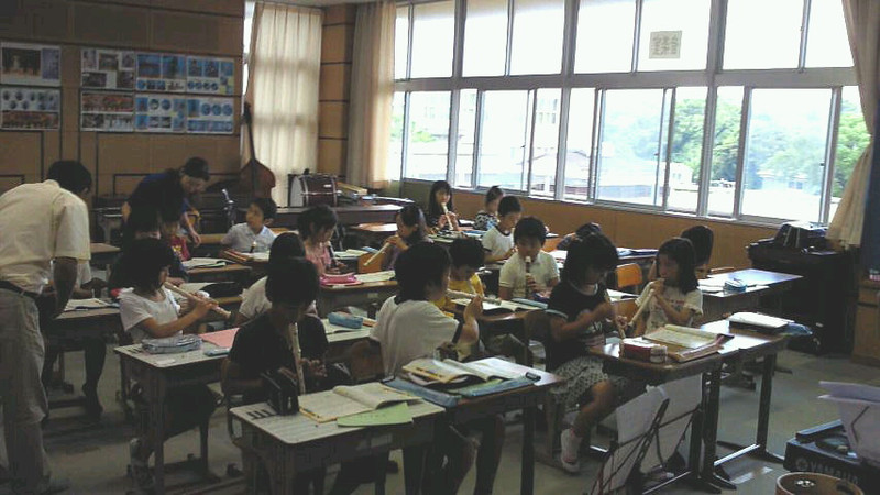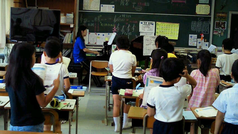 上手にリコーダーを吹いたり、担任の先生のピアノに合わせて元気よく歌ったりしています