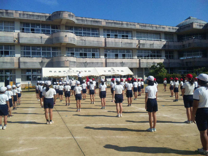 今日から校庭で開会式の練習が始まりました。