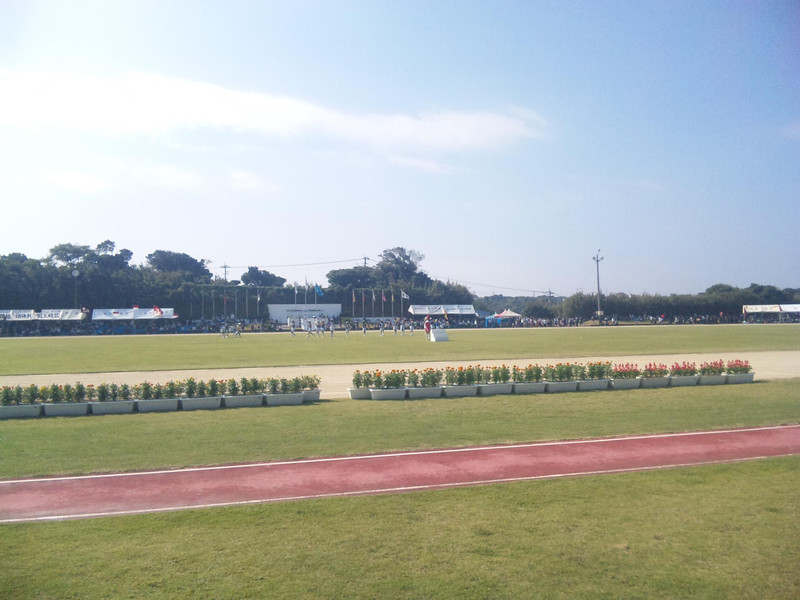 金管バンドがマーチングドリルを行いました。 広いグラウンドの中で元気な演奏ができました。