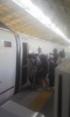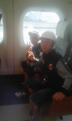 新玉名駅から、新幹線で鹿児島市に向かいます。初めて?の新幹線にワクワクする子どもたちです!