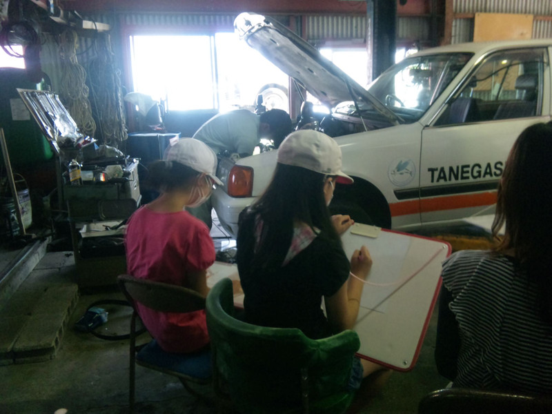 学校近くにある自動車整備場、ガソリンスタンドには毎年スケッチ大会ではお世話になっています。 昨年度は整備場で描かせていただいた絵が県知事賞を。 今年もありがとうございました。